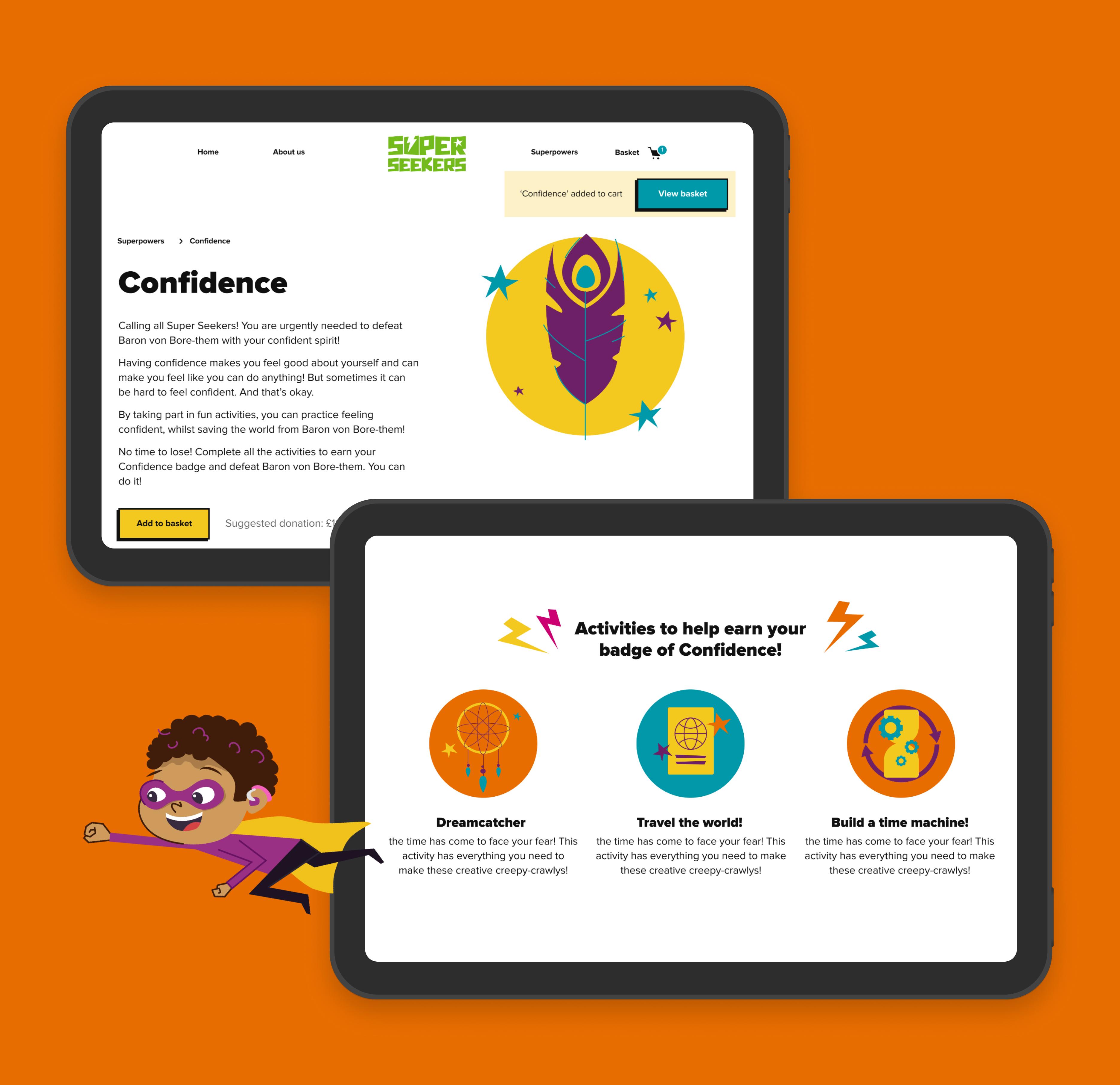The Super Seekers website has many purposes – to entertain, to educate and ultimately deliver donations for Barnardo’s. While the first two are extremely important, the last is the mechanism that will allow all of this good work to continue. We wanted to try and show users the value of their donations and encourage a higher level of gifting where possible.
