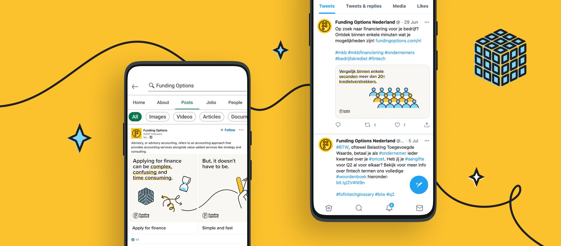 Funding Options also wanted a fresh tone and creative for its social activations, for SME and Advisory audiences. We created a number of animations to run as paid and organic social advertising for the Dutch and UK markets. We were retained for creative support for a period of three months to provide this.