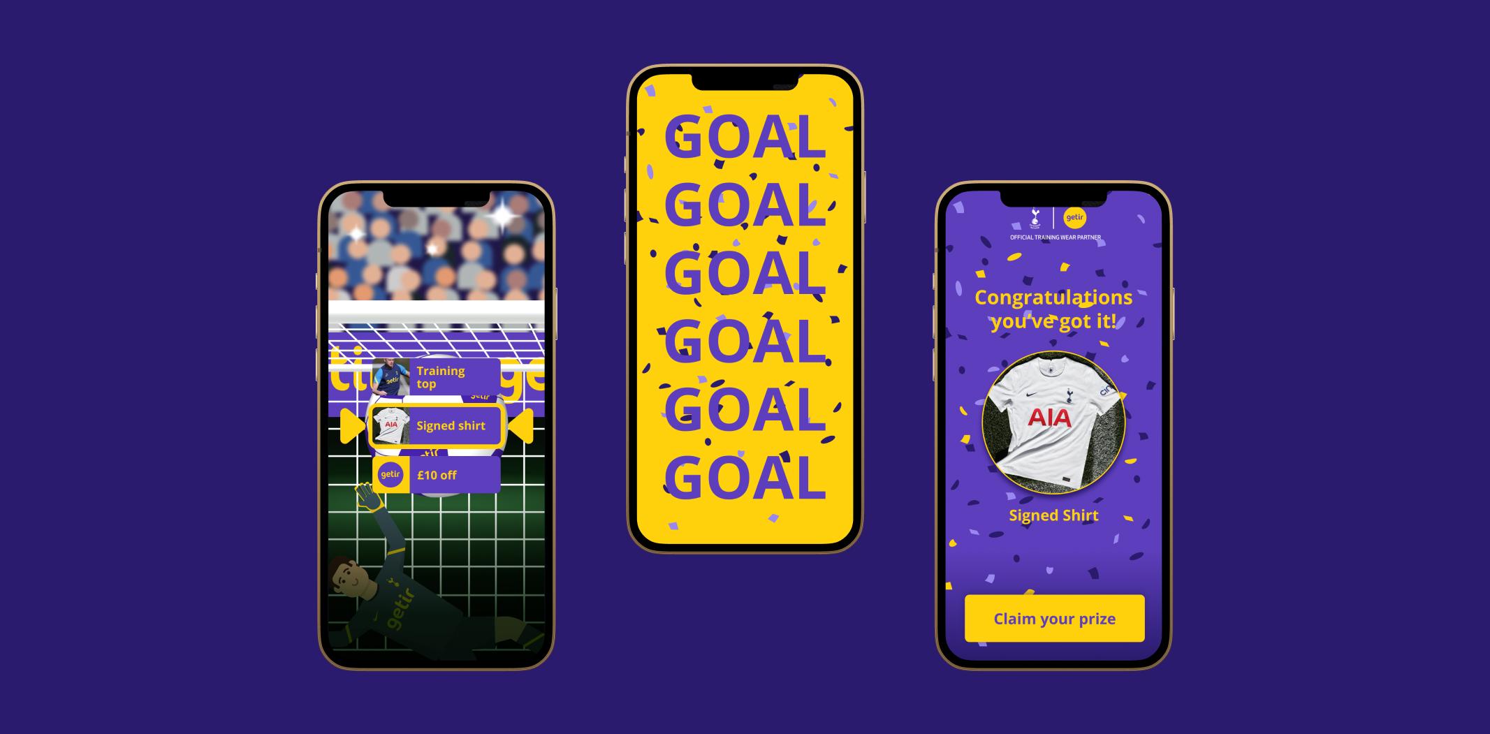 Among their global partnerships, in summer 2021 Getir became the official training wear partner of Tottenham Hotspur FC. CAA approached us to help deliver an exciting digital product to celebrate this milestone partnership. The brief was to run an online competition in the stadium, to build brand awareness, engagement and incentivise people to download the Getir app.