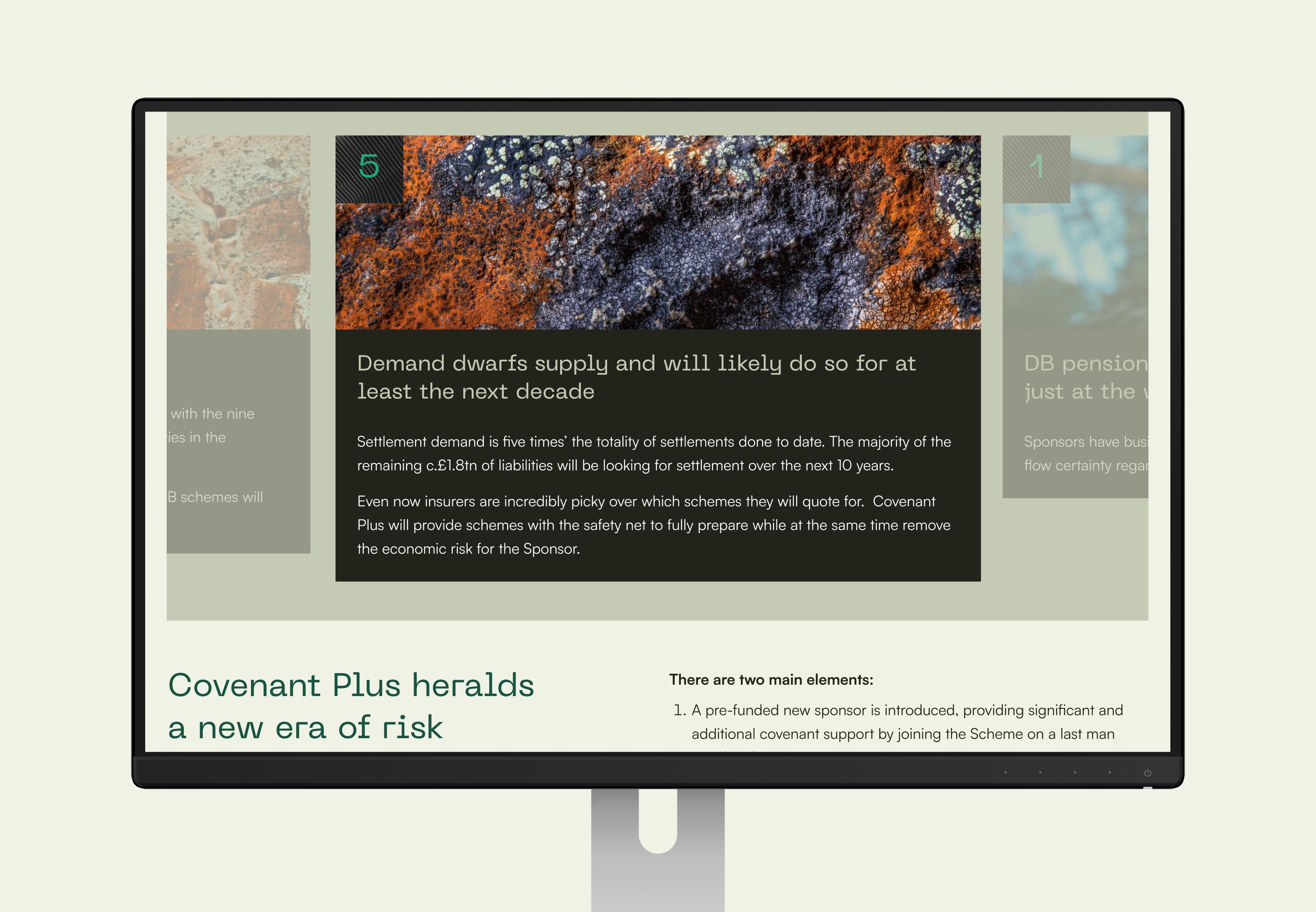 CovenantPlus is a belt-and-braces approach to reaching a settlement or managing a scheme in a run-off period, removing related economic risk for the sponsor and removing the sponsor risk for the trustees. As PSF’s chosen creative partner we helped to launch a venture that manages risk, gives sponsors and trustees more security, and supports a better future for employers and their pension scheme members.