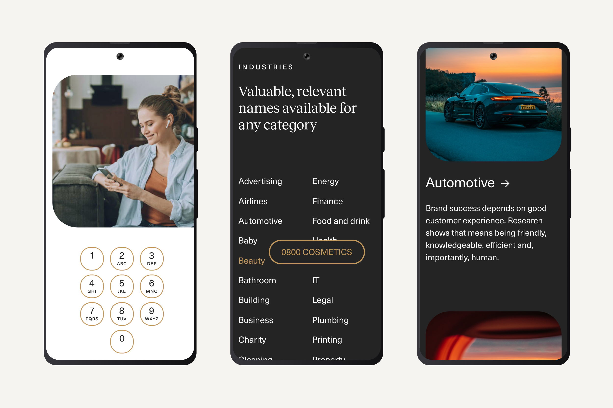 We wanted to create a sense of simplicity and clarity in the design work for the Phone Names brand. We developed a streamlined core colour palette with accents to be able to clearly highlight calls to action or key pieces of information for the brand’s audience.