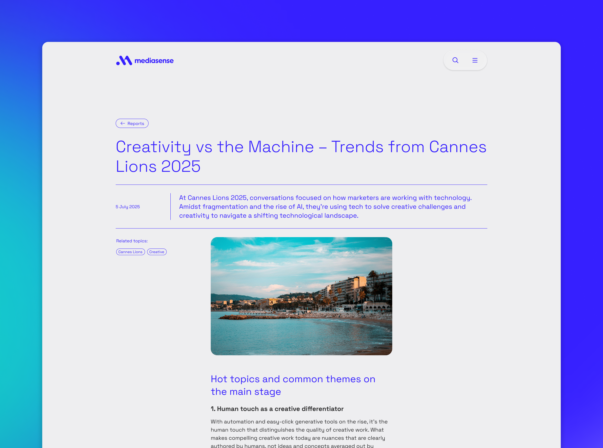 Having worked with mediasense for many years, we brought a clear understanding of the organisation and its direction of growth to this project. Through focused, collaborative sessions we aligned on what was most important to project success and shaped the website and design system around specific commercial needs and positioning. This approach allowed us to deliver a phased programme of work, with phase one now live and laying strong foundations for phase two to deepen product narratives and tell more of the mediasense story.
