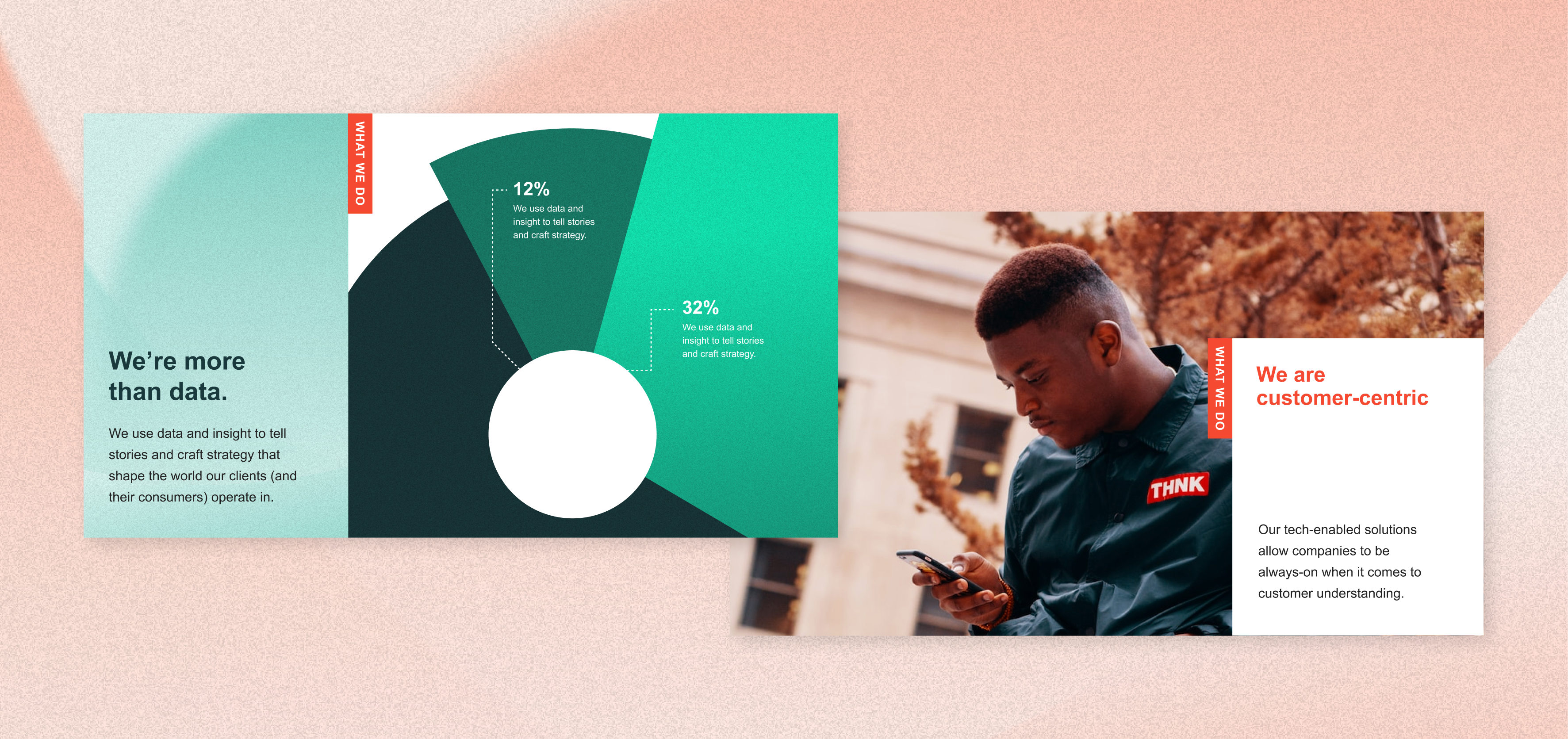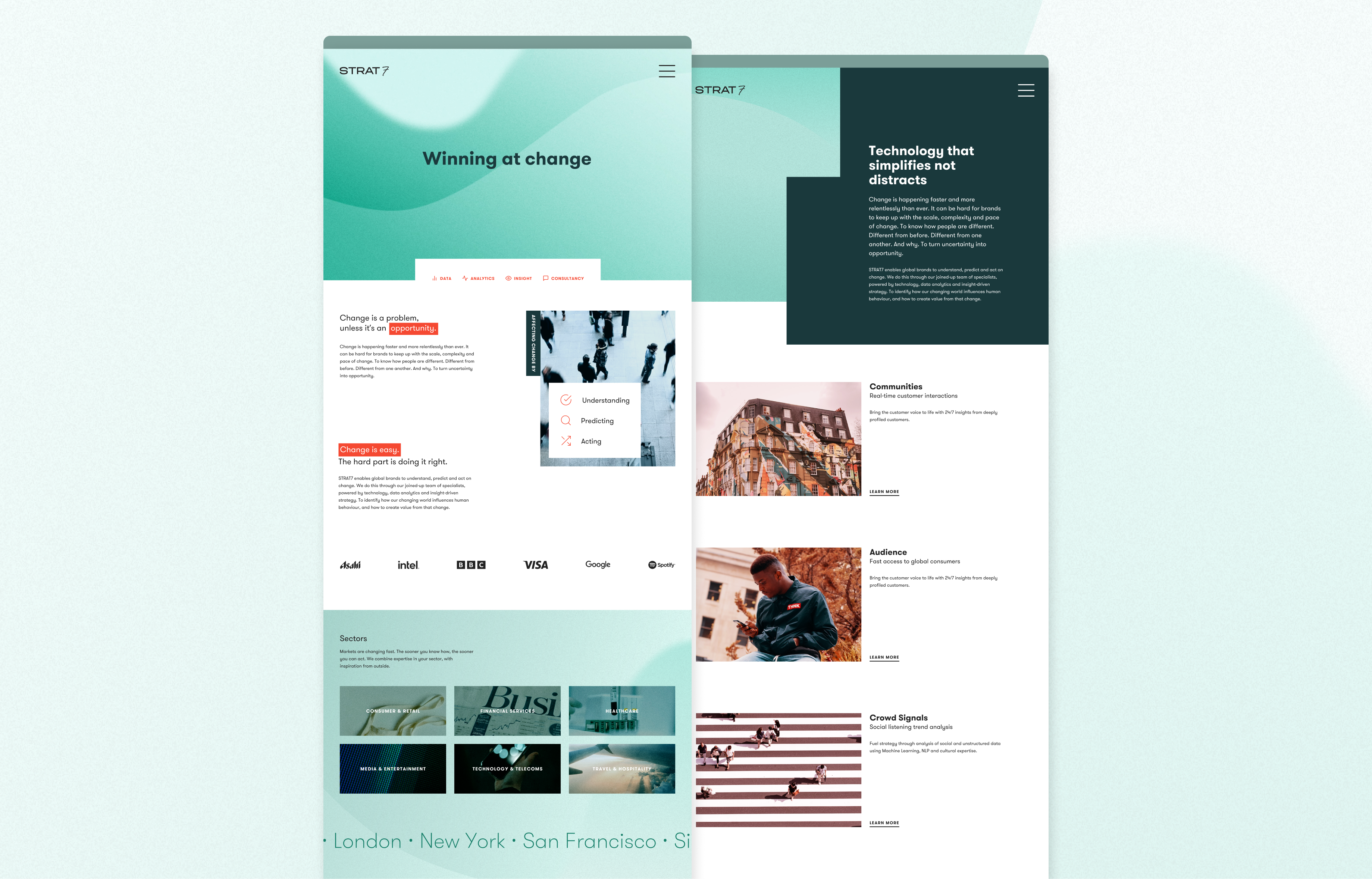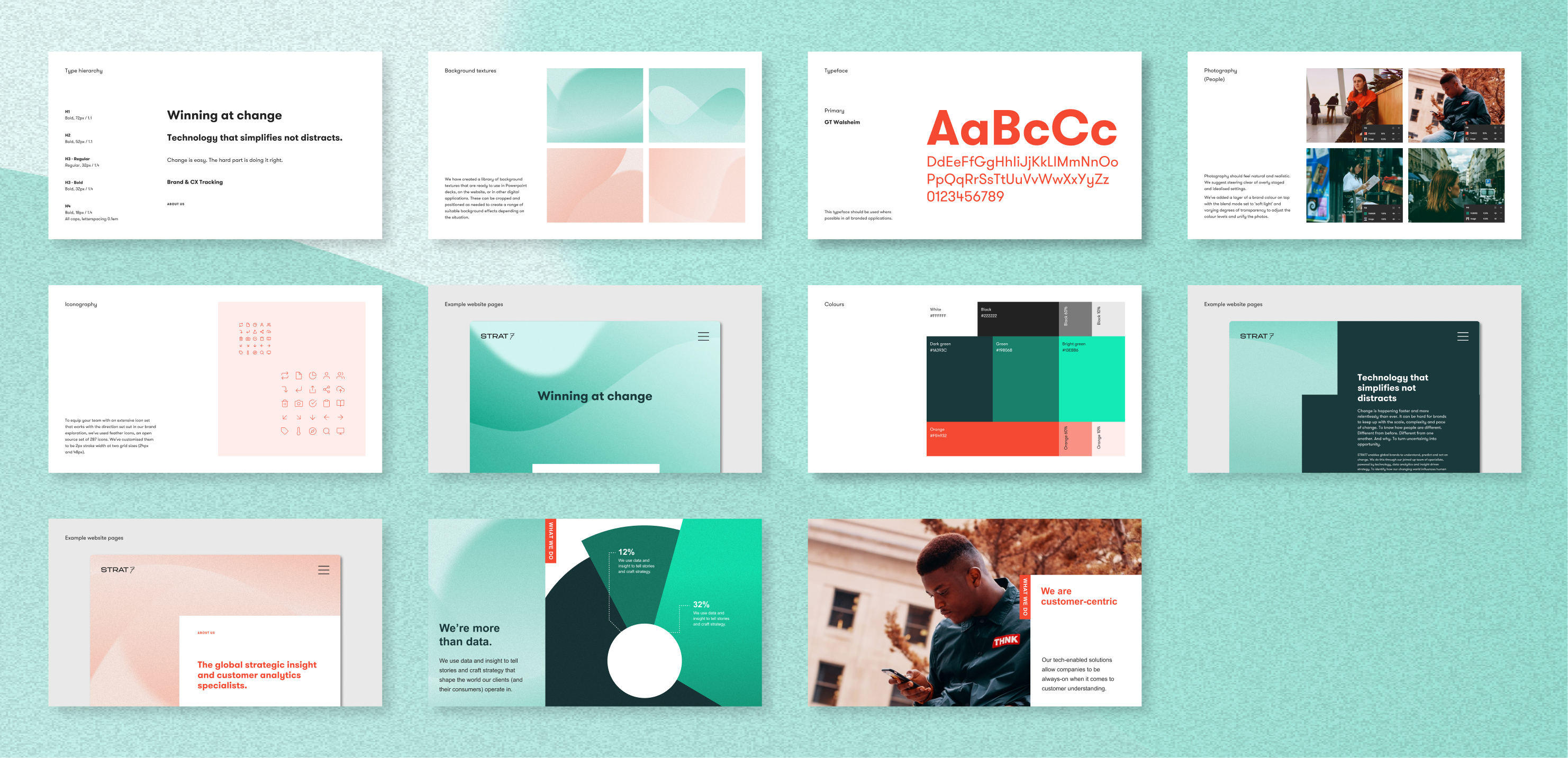 The client wanted to implement the new designs themselves across the website and other materials. We compiled a guidance document that enables them to do this easily, quickly and consistently. Our creative approach works across uses, from social assets and animations to Powerpoint presentations, and can be easily expanded by the STRAT7 team. It’s ready to be rolled out to all the companies in the group so that they all look visually coherent but can retain their own distinct identities.