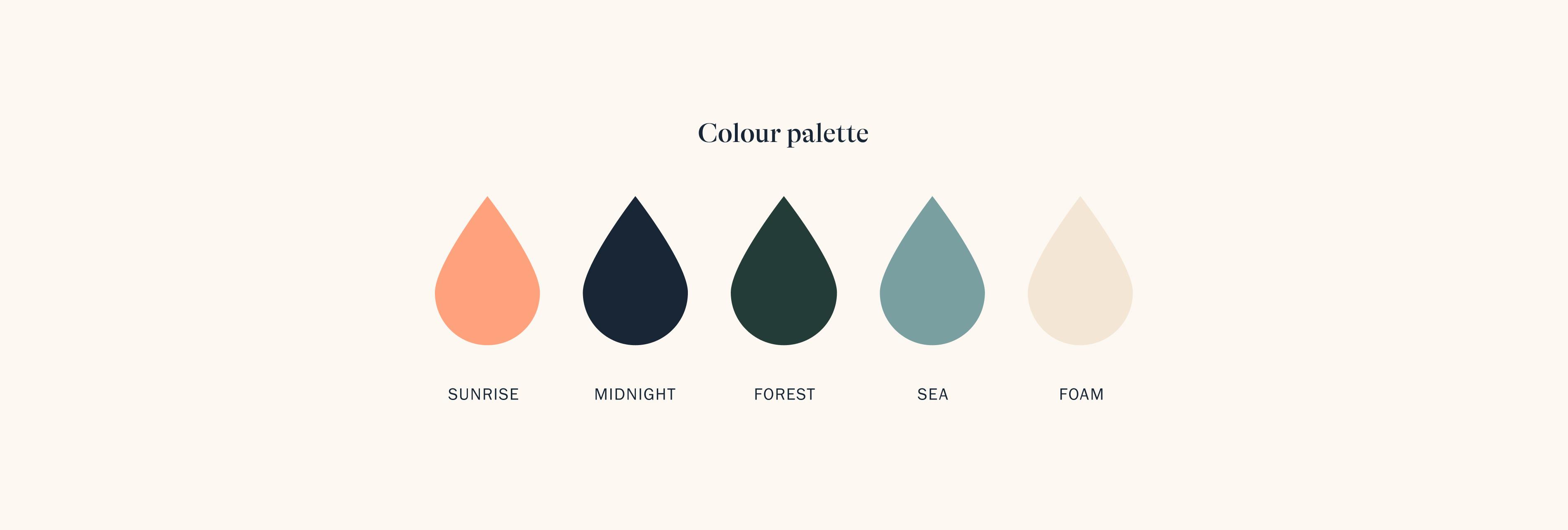 The calming colour palette was selected by sampling a breadth of nature photos from sunsets and natural coves in the UK. The font GT Alpina was selected due to it’s high contrast and fluidity, the terminals reflecting water around a geographical cove. We also added messaging that peaked the curiosity of passing foot traffic on the windows, inspired by vintage apothecary styling – reinforcing that sense of discovery and curiosity.