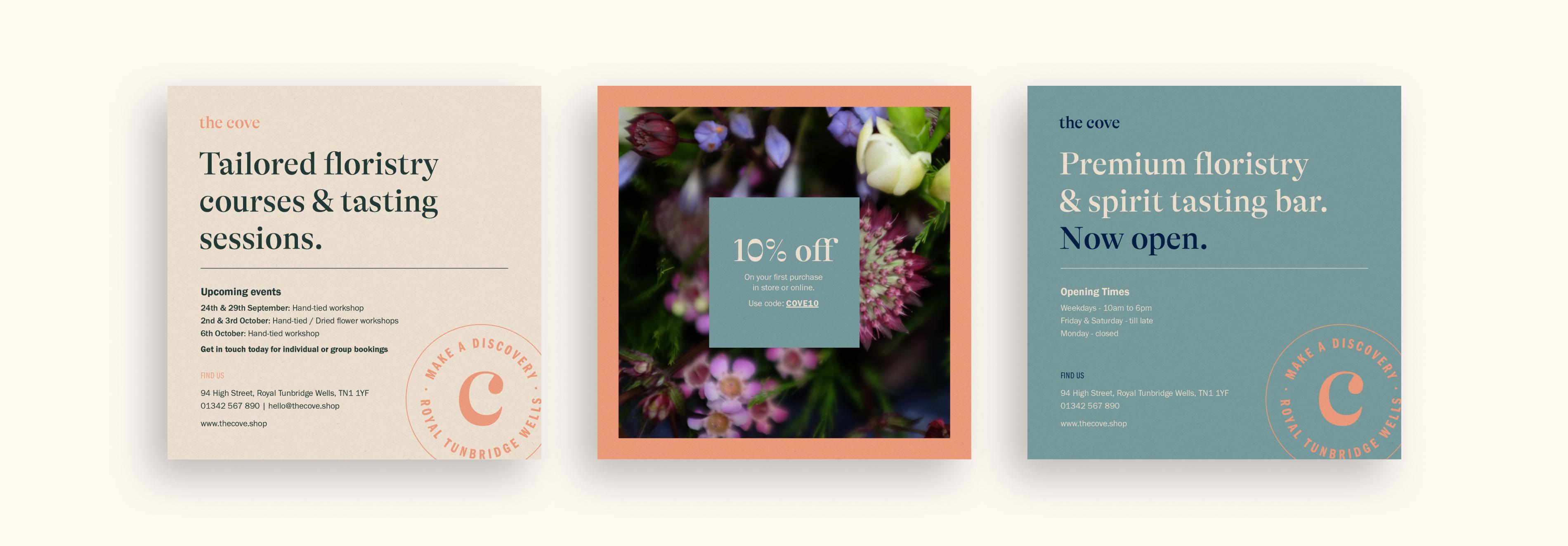 A brand and shopify build for The Cove, a new independent store and luxury florist in Royal Tunbridge Wells
