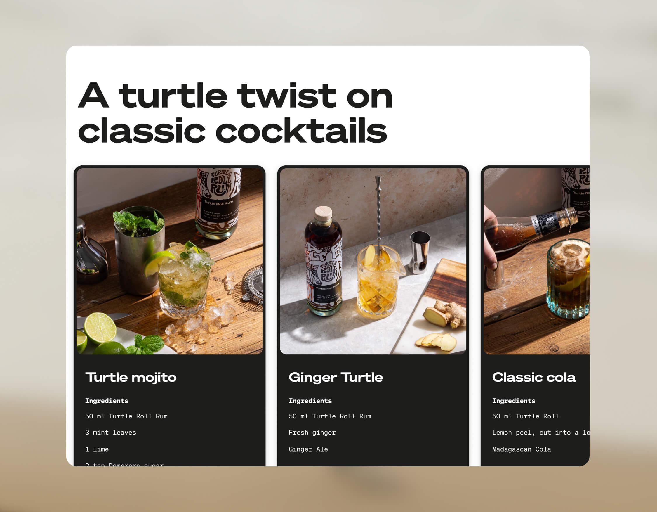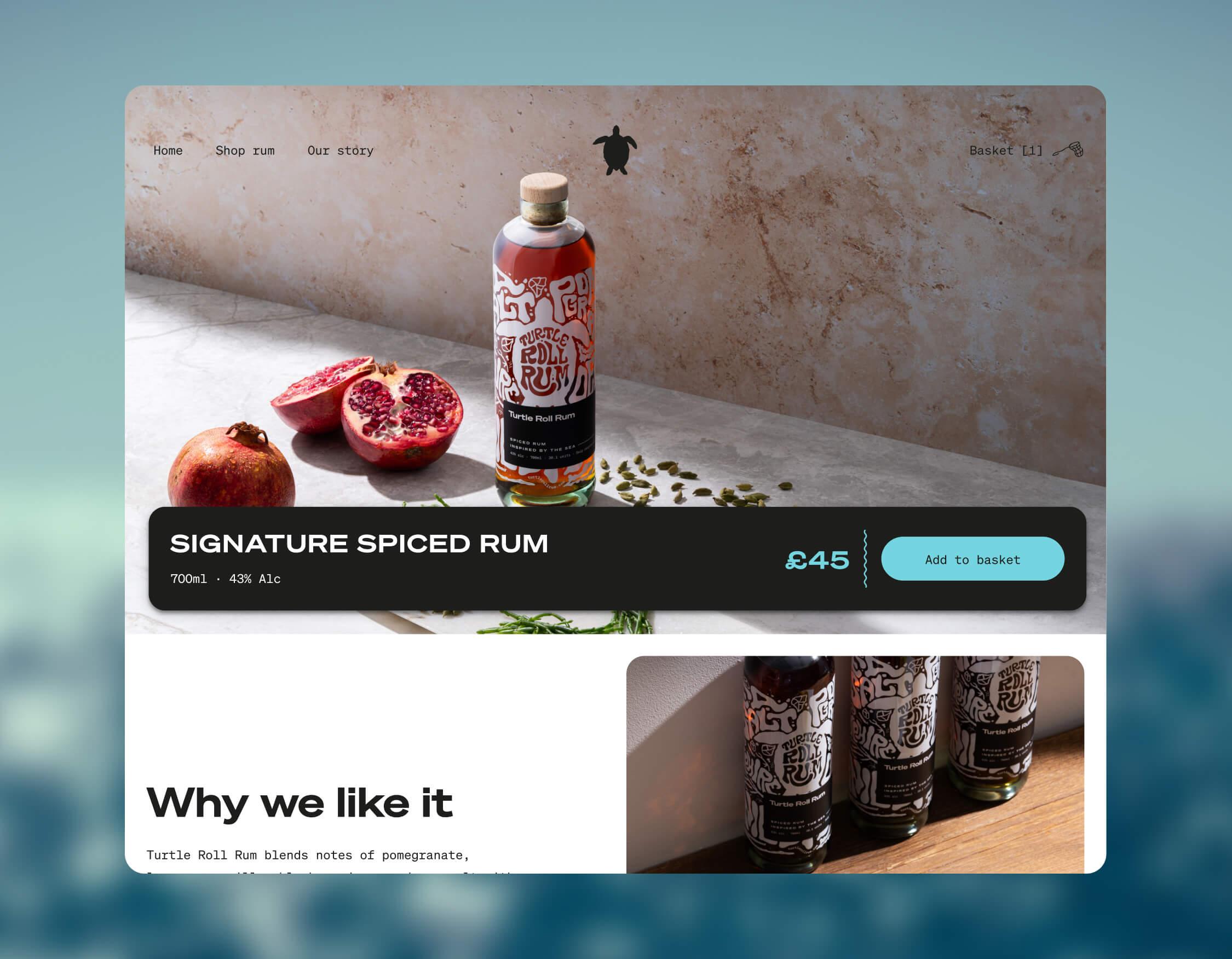 Turtle Roll Rum was conceived to be predominantly sold direct to consumer. This means that the customer experience and how the brand is presented online are paramount. We wanted to best present the personality of Turtle Roll Rum and establish a brand connection with customers, rather than it being a sales push.