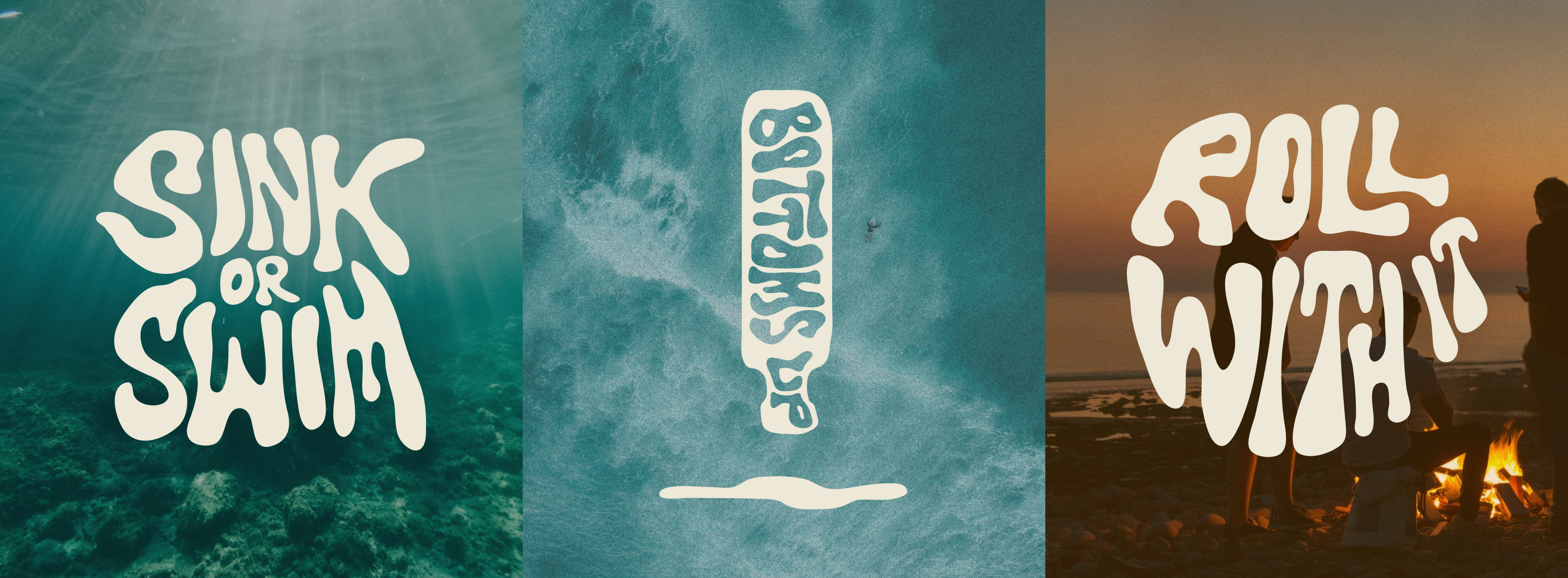 Our design director Angelo Iannelli wanted typography with a feeling of the sea so crafted loose, hand-drawn lettering, paired with the Söhne Breitt font as a contemporary counterpart. The illustrations, all hand-drawn by the Studiomade team, emulate typography distorted as if looking through water. The aqua tones and grainy texture of some of the photography were inspired by vintage surf photos e.g. 80s Miami.