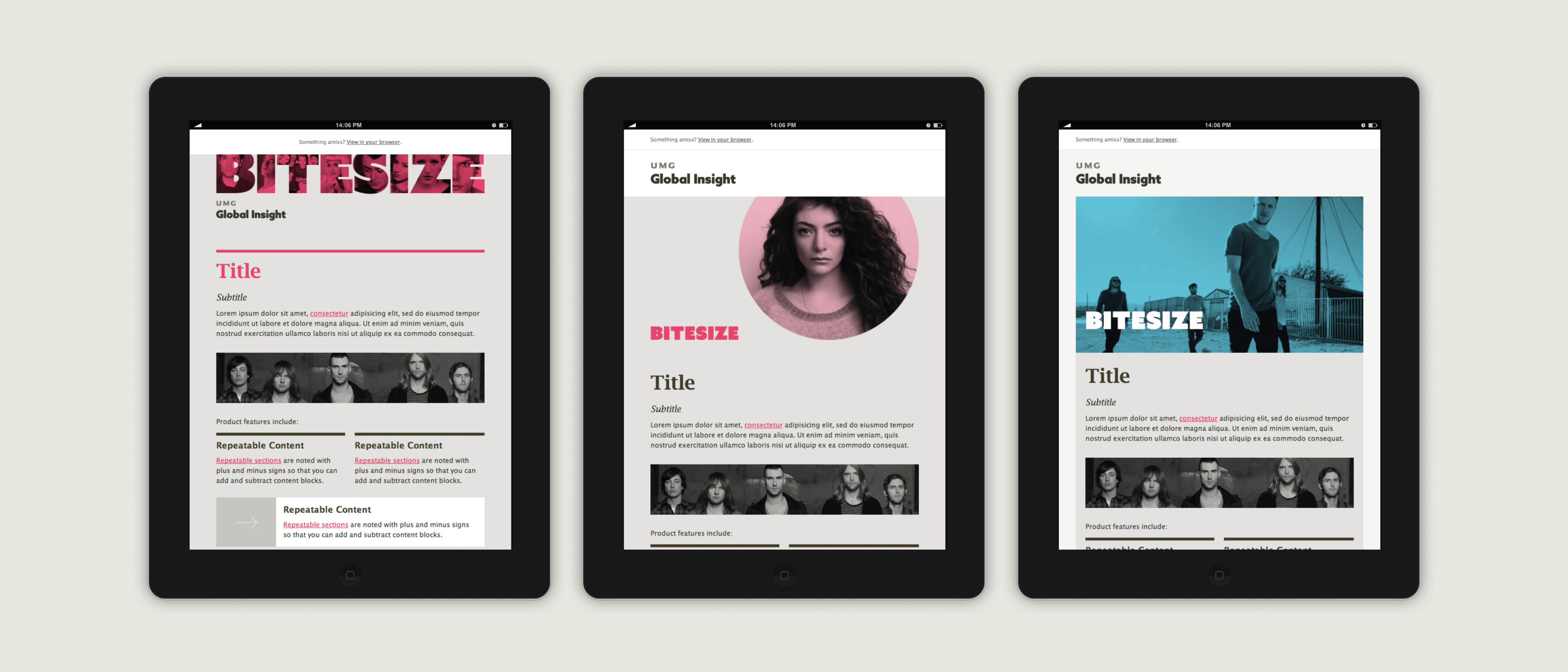 We created several responsive Mailchimp emailer templates for the team which allowed their team to easily create well-designed internal update newsletters based on their department's wide range of topics in the music industry.